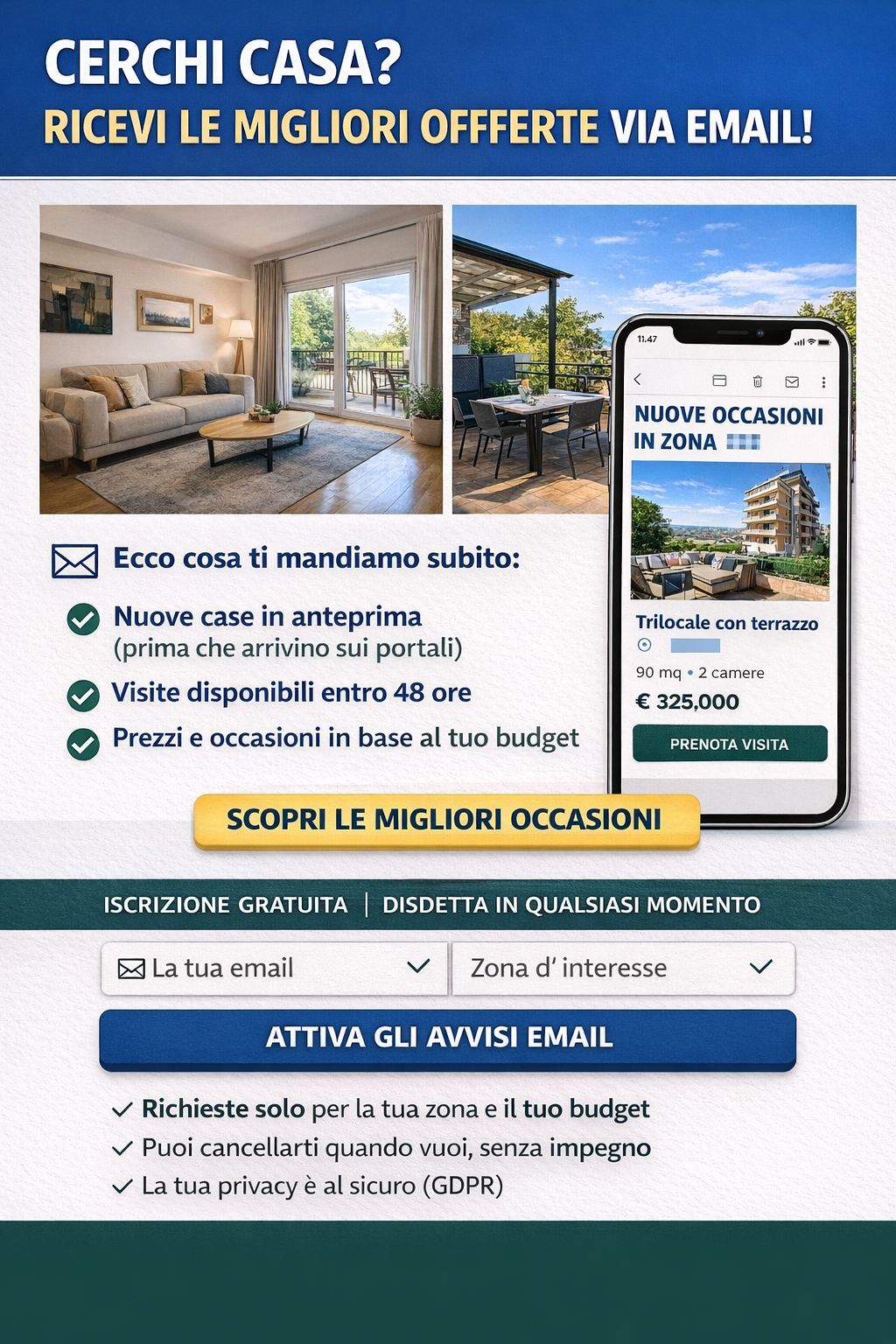 Chiamata di 15 minuti per conoscerti, sopralluogo dell'immobile e piano d'azione personalizzato. Tutto chiaro e trasparente.
